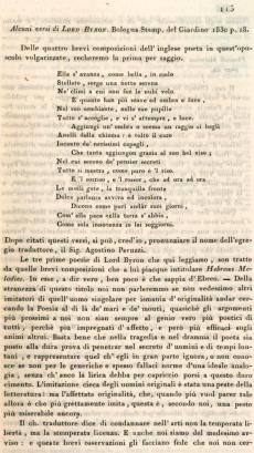 Alcuni versi di LORD BYRON. Bologna Stamp. del Giardino 1830 p. 18.