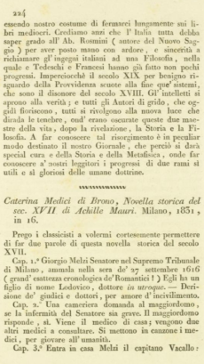 Caterina Medici di Brono, Novella storica del sec. XVII di Achille Mauri. Milano, 1831, in 16.