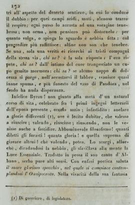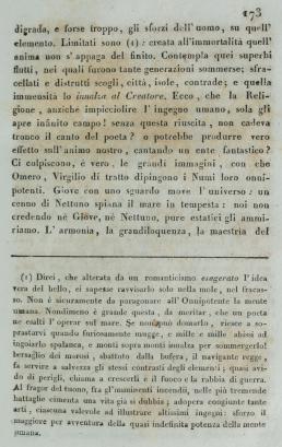 (2) Intendo la cosa letterariamente: in quanto alla morale, le diede anche troppa licenza quell'Autore: eppure si potrebbero dimostrare men pericolose quelle, che le licenze di Lord Byron.