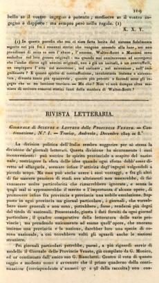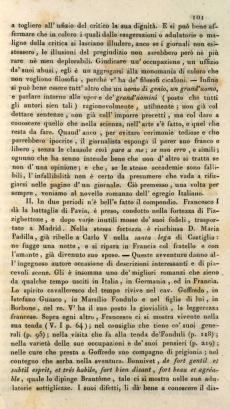 Di più il Giornalista direbbe..... Ma che? Non è ancora finito? — Non ancora. — Le cose che ci restano a dire appartengono non tanto all'opera dell'autor nostro in particolare, quanto a pressochè tutta la generazione de' romanzi storici: e perciò mi sia lecito, seguitando, generalizzare il discorso.