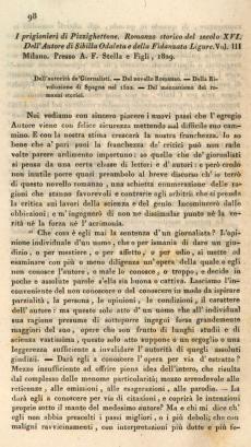 I prigionieri di Pizzighettone. Romanzo storico del secolo XVI. Dell'Autore di Sibilla Odaleta e della Fidanzata Ligure. Vol. III Milano. Presso A. F. Stella e Figli, 1829.