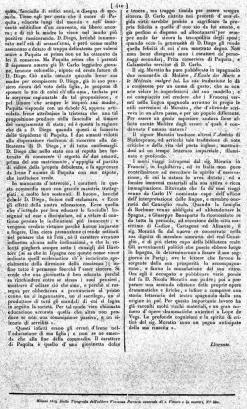Il sig. Moratin ha pure pubblicato in ispagnuolo due commedie di Molière, l'École des Maris e le Médecin malgré lui. La sua traduzione lo dà a conoscere per un uomo di gusto, che sa con arte velare le imperfezioni del suo modello; e mi compiaccio nel credere che i Francesi versati nella lingua spagnuola avranno in pregio le utili correzioni di Moratin, che d'altronde scriveva in un altro paese, e per un popolo differente. Per essere un genio superiore andava forse affatto esente Molière dagli errori a' quali è condannata l'umana natura?