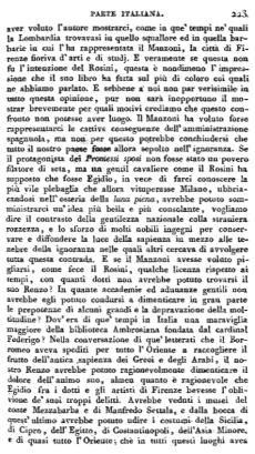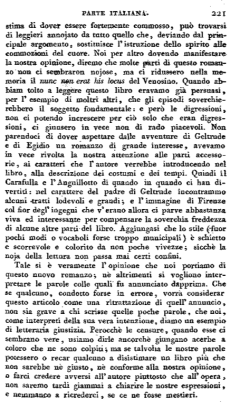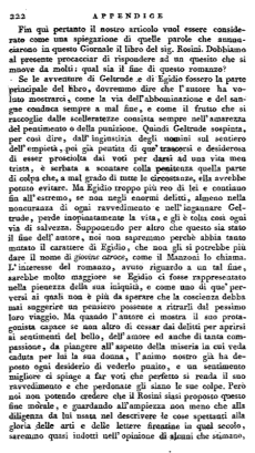 Fin qui pertanto il nostro articolo vuol essere considerato come una spiegazione di quelle parole che annunciarono in questo Giornale il libro del sig. Rosini. Dobbiamo al presente procacciar di rispondere ad un quesito che si muove da molti: qual sia il fine di questo romanzo?