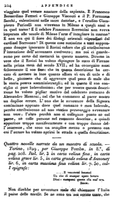 La Signora di Monza, Storia del secolo XVII. — Pisa, 1829. Volumi 3 in 8.° di circa pag. 900 complessivamente, con una tavola in rame. Lir. 12 ital.
