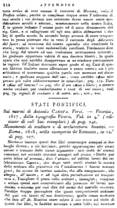 Questo è il giudizio che dell'originale diede il giornale letterario scozzese Edimburgh Review. Il traduttore passa a render ragione del metodo da lui tenuto nella traduzione, e prima di tutto avvisa di aver omesso il racconto di Mocuma, ossia il Profeta velato, perchè in complesso troppo sente l'influenza di una scuola i cui dettami non sembrano dover essere senza modificazione accolti e adottati, massimamente nella nostra Italia. E in questo lodiamo l'ottimo gusto ed il savio divisamento del sig. Catti, e ci rallegriamo ch'egli non abbia abbracciati i delirj di quella scuola. In secondo luogo avverte di avere trasportato in prosa piuttosto che in versi il racconto degli Adoratori del fuoco, ad eccezione del tenere epicedio che conchiude la storia, tradotto in versi endecasillabi catulliani. Finalmente dice che lungi dal tenersi ad una traduzione strettamente letterale, ha giudicato opportuno valersi di una discreta libertà, la quale spera che non sarebbe disapprovata se ne rendesse partitamente le ragioni. Gl'Italiani dovranno saper grado al sig. Catti di questo libretto tradotto senza affettazione e senza stento; ma i più schizzinosi vi troveranno qualche parola non ammessa nel dizionario, e qualcuna neppure dall'uso, come sarebbe calmo adoperato più volte addiettivamente in mascolino; pag. 112. Tutto è calmo all intorno! – pag. 161 il sen calmo e libero; e altrove anche combatto per combattimento è voce di suo conio; vedi pag. 79. segnali di combatto e di morte. ecc., ecc., ecc.