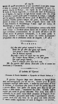 A questo libretto, cui meglio forse darebbesi il nome di novella che di romanzo, non manca certamente la vivacità dello stile e delle imagini onde abbella tutte le sue descrizioni il sig. Bertolotti; e quel non so che di patetico che gli discorre sì facile dalla penna. Con tali incontrastabili pregi qui pure ci commove e c'intenerisce assai di sovente, benchè abbiasi voluto trarre argomento di affetto e d'interessamento dall'errore e dalla disperazione.