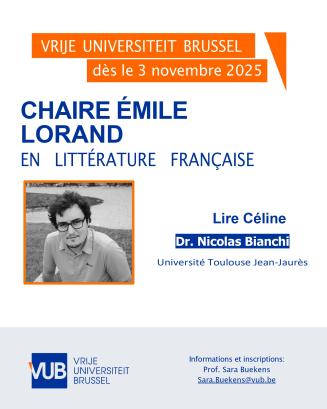 This year's 'Chaire Émile Lorand en littérature française' will be held by Dr. Nicolas Bianchi (Université Toulouse Jean-Jaurès), who will present a lecture series entitled 'Lire Céline'.