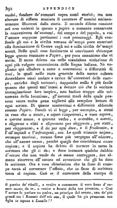 Tutte queste e simili locuzioni sono veri barbarismi, senza alcun bisogno tolti da linguaggio straniero, in tali modi affatto alieno dal nostro. Ma l'autore del Papiro crea improprietà, barbarismi e solecismi tutti suoi. [...]